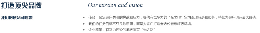 2012年公司斥巨資從德國(guó)專業(yè)空氣研發(fā)實(shí)驗(yàn)室引進(jìn)銳鈦型納米二氧化鈦研發(fā)成果,同時(shí)與國(guó)內(nèi)知名高校進(jìn)行合作,成立“光之吻”品牌,致力于為人類創(chuàng)作純凈,健康的呼吸環(huán)境,成為你身邊的健康衛(wèi)士,實(shí)現(xiàn)365天健康呼吸的夢(mèng)想,目前是同類產(chǎn)品中最有競(jìng)爭(zhēng)力的品牌之一。